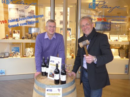 Nicht nur am kommenden verkaufsoffenen Sonntag zur Casseler Freyheit, sondern auch an den kommenden drei Samstagen können Passanten einen guten Tropfen unseres Jubiläumsweines für den guten Zweck ersteigern.