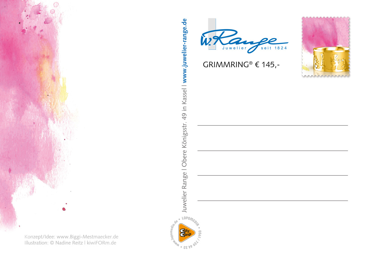 Das erste Motiv einer vierteiligen Reihe ist jetzt noch eine Woche erhältlich, dann folgt Motiv Nummer zwei. GRIMMRING- und Märchenfans wie auch Postkartensammler sind schon gleichermaßen gespannt. :)