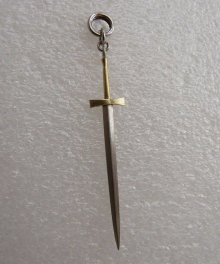 Der Kunde ist König. Und dies ist sein Schwert. :) Vorlage für diesen etwa 4 cm langen hängenden Ohrstecker war ein früher real existierendes Schwert wie Excalibur, das Schwert des König Artus.