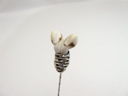 Ein Grandel ist der Eckzahn eines Hirsches. Schon seit Urzeiten benutzen Jäger solche Grandeln als Jagdtrophäe und Schmuck. Wir haben die Grandel gefasst in einem silbersulfierten, tordierten Vierkantdraht.
