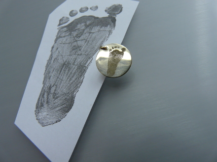 So wie die jungen Eltern, die mit einem Farbabdruck des Fußes ihres Babies zu uns kamen und sich wünschten, dass wir diesen Babyfuß zu Schmuck verarbeiten. Da konnte unsere neue Graviermaschine hier in unserer Werkstatt gleich mal zeigen, dass sich ihre Anschaffung gelohnt hat. Und so entstand dieser Silberanhänger mit einem Babyfuß als Faksimile-Gravur.