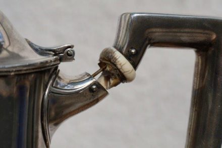 Die meisten Tee- oder Kaffeekannen haben einen Griff aus Bambus, Kunststoff oder Holz. Und das macht Sinn – denn frisch aufgebrühter Tee oder Kaffee ist heiß, was man schnell schmerzhaft spüren kann, wenn der Griff aus einem leitenden Material wäre. Wie bei einer Kanne, die vollständig aus Silber gefertigt wurde. Daher haben die meisten Silberkannen Holzgriffe. Ist das nicht der Fall, dann besitzen diese Kannen zwischen Kanne und Silbergriff ein Stück, das man Isolator nennt. Ohne diesen Isolator zwischen Kanne und Griff würde man sich jedes Mal die Hand verbrennen, wenn man sich eine Tasse frisch aufgebrühten Tee oder Kaffee eingießen wollte.