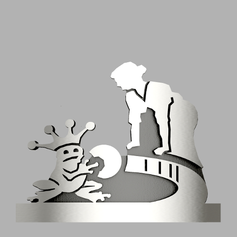 一位公主把她的金球掉落在池塘里。一只青蛙愿意帮助她把金球拾起来,前提是公主必须答应吃饭的时候和他一起分享餐桌,睡觉的时候让他睡在她的小床上。公主立刻答应了他的要求。可是拿回金球后,她就不想再和青蛙有任何交集了。国王要求他的女儿遵守承诺,她却把青蛙狠狠地摔到墙上。这个时候青蛙却变成了英俊的王子。