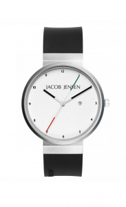 Der dänische Industriedesigner Jacob Jensen wurde unter anderem mit Arbeiten für Bang & Olufsen bekannt. Er hat nicht nur Uhren, sondern auch Radios, Telefone oder Brillen und vieles mehr designt. Jacob Jensen schuf eine in ihrer Formensprache einzigartige Uhrenkollektion. Einige der Modelle sind im Museum Of Modern Art in New York ausgestellt.