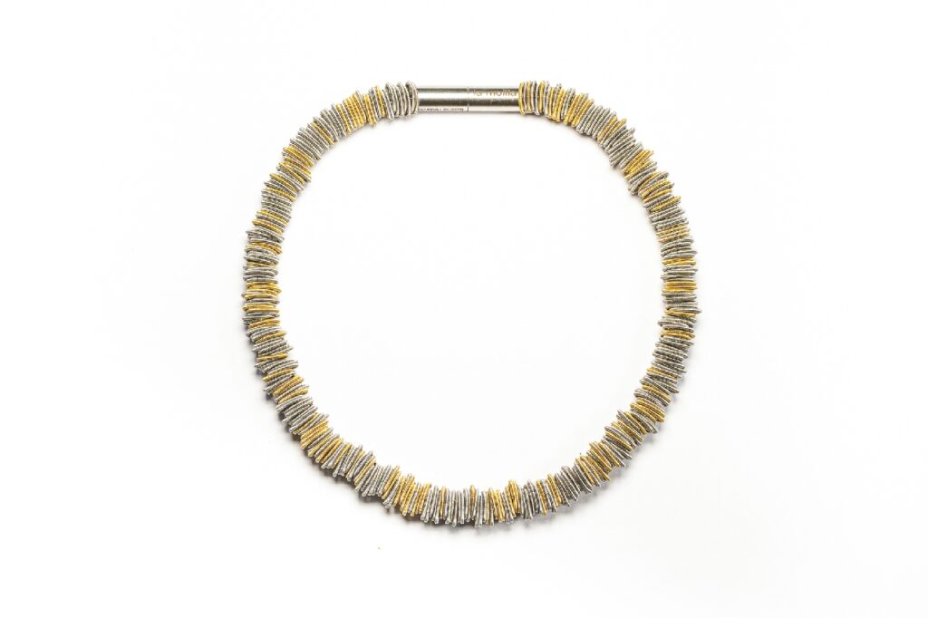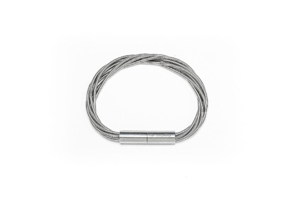 Das Wort „molla“ bedeutet auf Italienisch „Feder“. Davon inspiriert, gründete Tiziana Redavid die Marke la mollla® mit drei „l“ – welche grafisch die Bewegung der Federn symbolisieren. Die Schmuckmarke verbindet Edelstahl mit Industrie-Federn zu einer feinen Textur, die an Seide erinnert.