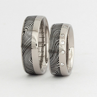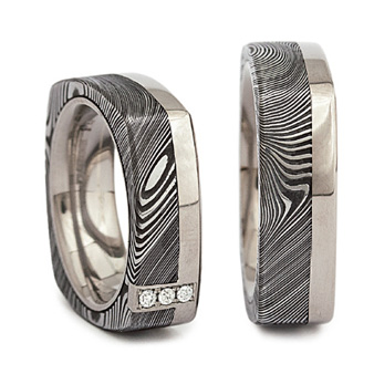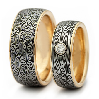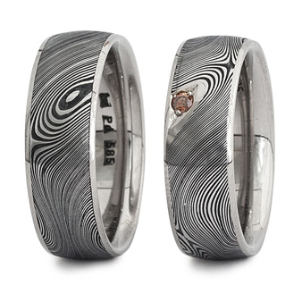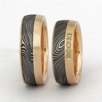 Damaszener Stahl ist wie auch wir Menschen sind – man meint, den Werkstoff gut zu kennen und doch überrascht er uns immer wieder. Wagebundt von Joachim Bartz – diese Trauringe aus Edelmetall in Kombination mit Damaszener Stahl sind etwas ganz Besonderes. So wie auch Ihre Liebe etwas ganz Besonderes ist. Für diese Ringe wird nur hochwertiges und ethisch einwandfreies Material verwendet: Damaszener Stahl aus Schweden, fair gehandeltes Edelmetall aus einer kleinen Kooperative in Argentinien und Diamanten aus einer deutschen Schleiferei in Indien, in der 135 Menschen unter fairen Bedingungen fairen Lohn erhalten.