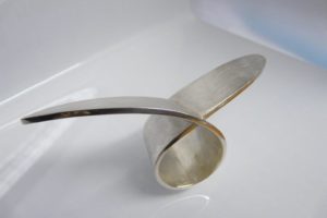 Ja, Sie sehen richtig – dieser Fingerring geht einmal quer über die ganze Hand. Diesen Ring fertigten wir bereits vor sehr vielen Jahren für einen Kasseler Künstler an, dem es Freude machte, seine Kreativität auch in Schmuck umzusetzen. Er